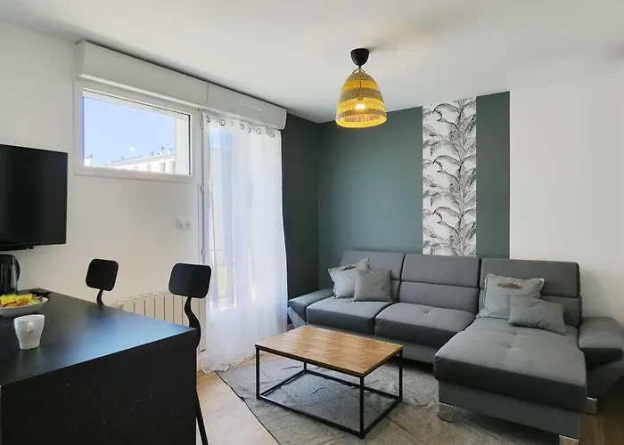 Calme Et Confort Pour Vos Sejours Moyenne Duree ferielejlighed ligger næsten 3 km fra Moulin Strand. Det består af 1 soveværelser, 1 badeværelser og et fuldt udstyret køkken.